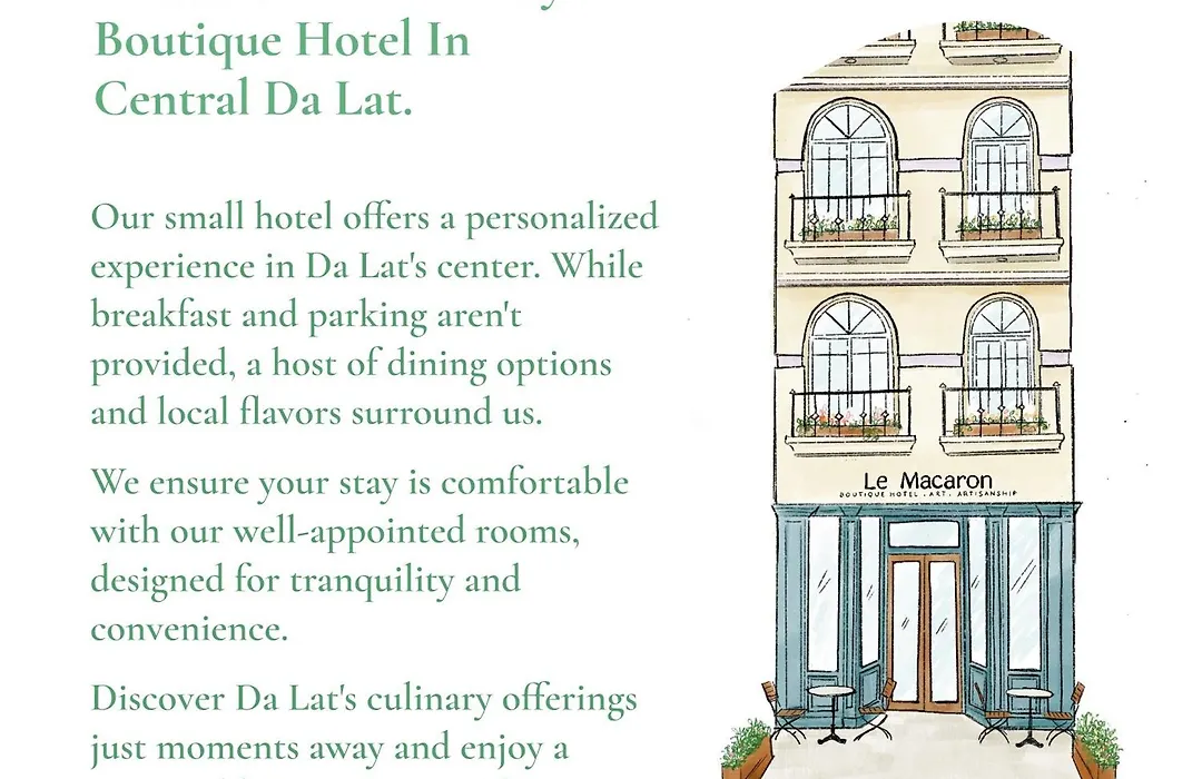 Obsahující Wi-Fi ve veřejných prostorách, Le Macaron City Center - Boutique Hotel Dalat nabízí ubytování 1 km od Hang Nga. Toto ubytování typu hotel nabízí ubytování ve čtvrti Xuan Huong Lake s blízkým přístupem do Cau Dat Tea Hill.